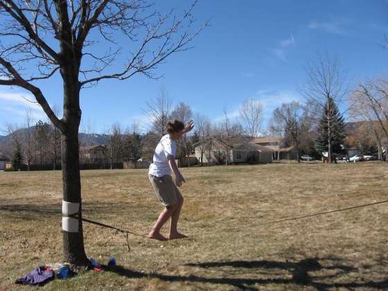 Lo Slacklining, inteso come forma ludica di allenamento, ha l’obbiettivo di portare al limite il senso dell’equilibrio e la coordinazione motoria, nel massimo divertimento, oltre ad essere incredibilmente stimolante: camminando sulla slackline si allena mente e corpo ad un nuovo tipo di concentrazione e di attività: la meditazione. Sebbene all’inizio sembri molto difficile, con pochi giorni di allenamento si inizia già a muoversi decentemente (ve lo assicuro). Non costa molto, a seconda della lunghezza della fettuccia. Lo si trova nei centri commerciali o negozi sportivi, si usa in qualsiasi luogo e per noi, nel nostro piccolo, sarà una sfida sublime alla gravità. Ricordiamoci comunque sempre di salvaguardare la natura. Se si usano come ancoraggi gli alberi è bene interporre sempre qualcosa che attutisca l’azione del nylon sull’albero, i segni che lascia non sono indifferenti e può danneggiare la pianta. Per iniziare si consiglia un’altezza non superiore a 20 cm., aumentandola gradualmente e aiutandosi con un bastone o due, uno per lato, da tenere in mano, a cui appoggiarsi tutte le volte che si sente mancare l’equilibrio.