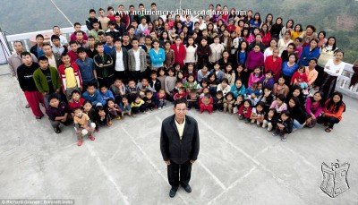 NUOVA DELHI - Trentanove mogli, 94 figli, 14 figliastri e 33 nipoti. Con questi 'numeri' Zona Chana è il capo della famiglia più numerosa del mondo. L'enorme famiglia vive in una casa a 4 piani composta da 100 stanze nel Batwang - un villaggio del Mizoram nell'India nordorientale - ad eccezione delle mogli che vivono in dormitori comunali. Dunque una famiglia con 181 componenti.