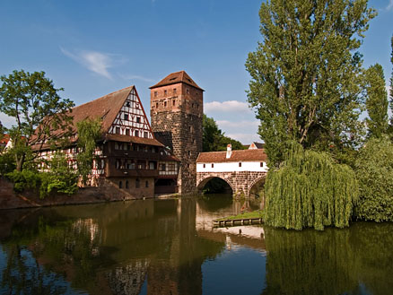 Arrivati a Norimberga, nel punto prestabilito troviamo la guida ad attenderci. Questa ci fa fare un primo tour della città col pullman e ci promette una super mattinata per il giorno successivo... vediamo il tribunale, sede della CORTE D’ASSISE, dove si sono svolti ben 13 processi per crimini di guerra contro i gerarchi nazisti della seconda guerra mondiale. Era stata scelta questa sede per motivi logistici in quanto era collegata direttamente con le prigioni e questo consentiva di evitare eventuali tentativi di linciaggio da parte della popolazione. Visitiamo i bastioni della città che con le mura di cinta che racchiudono il centro storico. La guida ci illustra che sono ben 17 i camminamenti sotto questi bastioni. Passiamo su alcuni ponti sul fiume che divide in due il centro storico e poi saliamo sull'altura, qui ci fanno scendere dal pullman e ci troviamo di fronte al magnifico castello o FORTEZZA IMPERIALE, chiamato BURG. Sempre la guida ci informa ancora che il castello è stato costruito in tre fasi, nel passare dei secoli, il primo impianto sembra risalga al 1040 rimaneggiato poi nei periodi successivi. Si possono visitare una cappella romanica, una sala imperiale dove gli affreschi sono ancora originali e la sala dei Cavalieri.