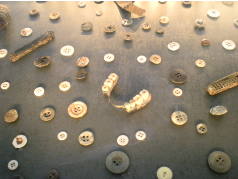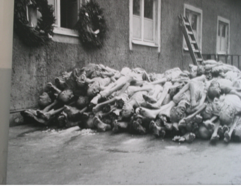 poi siamo saliti nei saloni dove le SS e i nazisti mangiavano (refettorio), enorme grandissimo e ora pieno di tavoli/teche contenenti bottoni, occhiali, dentiere, apparecchi dentali dei bimbi e ricordo particolarmente un paio di ballerine di vernice viola di una bimba piccola e le fotografie, tante per rappresentare quante brutture fossero state perpetrate in questo luogo.