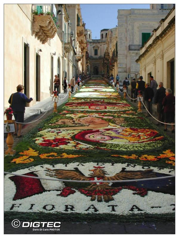 Ogni anno a giugno l'evento si ripete, sono 15 quadri di notevoli dimensioni, ogni quadro misura 7 x 11 mt. e sono legati tra loro da tappeti di foglie e si calcola che siano usati  500.000 fiori. Il momento culminante dell’Infiorata è quello in cui, finita la stesura dei pezzi infiorati, la processione con il Corpus Domini passa al centro del grande tappeto floreale e,  al termine della festa,  i bambini salendo sulla scalinata disfano l'infiorata.