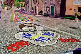 Nella mente della mia nonnina c'è però un altro Corpus Domini visto tanti anni dopo, in momenti meno poveri, e proprio perché non aveva potuto fare il viaggio di nozze, con il suo Luigi avevano deciso di andare a Genzano, dove ogni anno proprio per il Corpus Domini, viene steso un tappeto tutto di fiori, lungo la via .. Lo racconta con la delicatezza che distingue le persone anziane: è un piacere ascoltare questa nonnina, il Corpus Domini per lei rievoca tanti e tanti bei ricordi.....