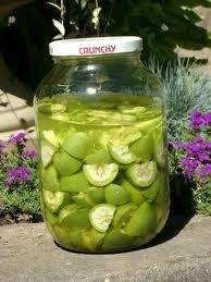 A parte si prepara uno sciroppo con 350 dl di acqua e 700 g. di zucchero , quando è raffreddato si versa sulle noci , precedentemente tagliate e si lascia al sole per un paio di giorni , mescolando di tanto in tanto.
