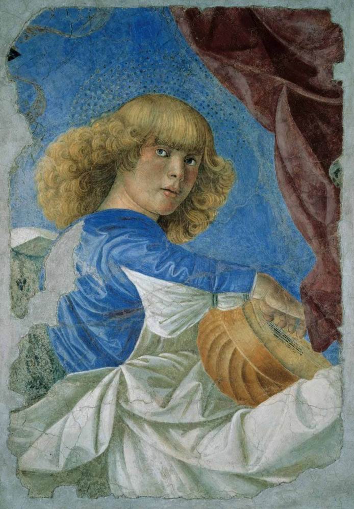 «Trovatori del cielo», li aveva definiti Adolfo Venturi nel 1913 nella Storia dell’arte italiana. E loro, angeli musicanti con cimbali, tamburi, liuti, mandolini, continuano a volare spensierati nell’azzurro, con riccioli d’oro e volti birichini. Raccontano come fosse bravo Melozzo da Forlì, e come avesse ben capito la lezione di Piero della Francesca, umanizzandola. Li aveva dipinti a Roma, in un grande affresco con l’Ascensione di Cristo, una sarabanda di scorci spericolati, di salti nel vuoto, di acrobazie celesti.