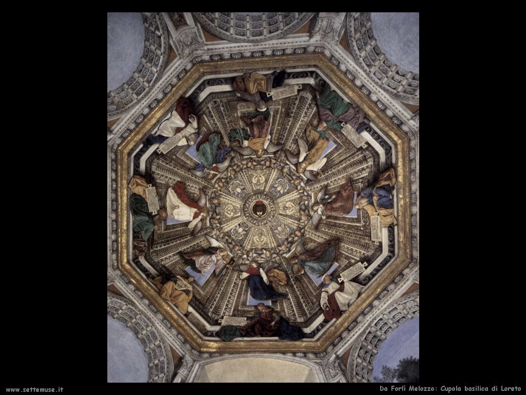 Tra il 1484 e il 1493, realizzò l'affresco della cupola della sagrestia di San Marco nella Basilica di Loreto, commissionato dal cardinale Girolamo Basso della Rovere. Fu uno dei primi esempi di cupola decorata sia con figure sia con elementi architettonici. Alla base della cupola, sopra la terminazione del tamburo e sotto gli angeli, dipinse su ogni vela otto Profeti seduti su un cornicione dipinto e inclinati in avanti, verso il basso, in modo che i volti mostrino il lato inferiore. Verso la sommità della cupola Melozzo dipinse un circolo di Cherubini e Serafini con al centro, sopra la testa dello spettatore, lo stemma del committente circondato da un festone.