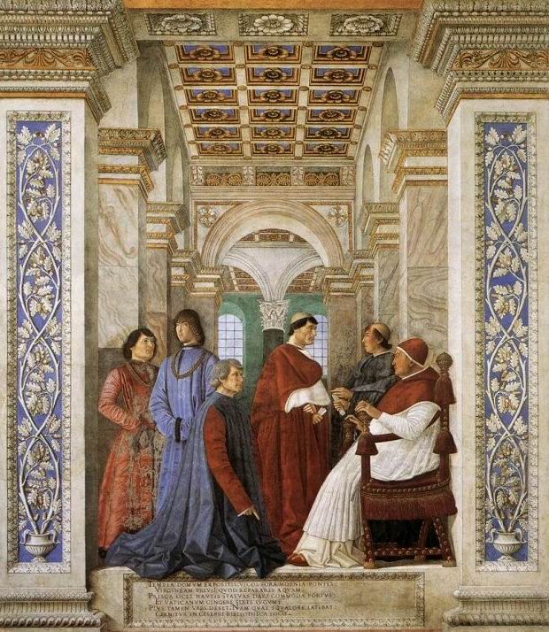 La prima di tali imprese fu l’affresco dell’abside della chiesa dei Santi Apostoli a Roma, commissionato intorno ai primi anni Settanta del Quattrocento dal cardinale Pietro Riario, nipote del pontefice.