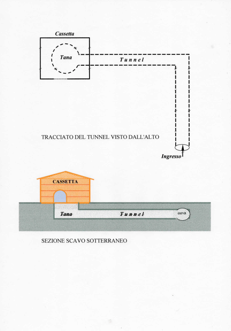 Lo scavo era iniziato in un punto lontano dalla cassetta ed il tunnel era diretto verso altra direzione. Dopo alcuni giorni, avvicinandomi alla cassetta-dormitorio sentii alcuni rumori, sollevai la cassetta da terra e, meraviglia delle meraviglie, scoprii dove era la tana giaciglio: cinque vispi coniglietti.