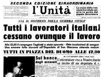L'Unità - Attentato a Togliatti - 14 Luglio 1948