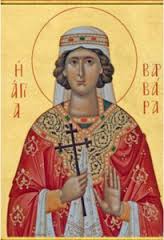 (*) – Il 4 dicembre sulle navi della Marina Militare Italiana, in onore della martire patrona, viene offerto un mazzo di rose rosse al Primo Ufficiale di tiro. Sulle navi il locale adibito a deposito di munizioni ed armi è detto “Santabarbara”.