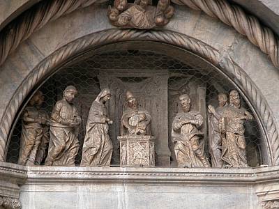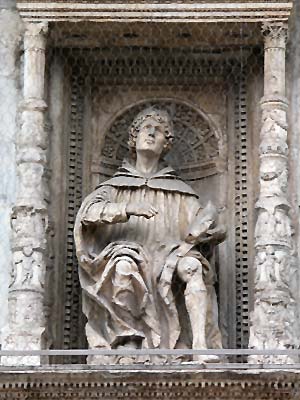 Nel portale principale ci sono delle nicchie e alla sommità della facciata si trovano delle edicole.