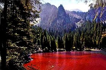 Il lago d’una volta con il suo caratteristico colore rosso