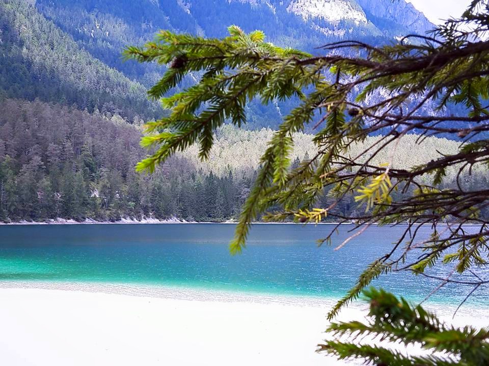 Il lago ora ha un colore verde, mi domando se sono le montagne che si riflettono nel lago a darle quel bellissimo colore verde splendente.