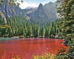 Fino a pochi anni fa, la colorazione rossa era stata erroneamente attribuita all’alga unicellulare Glenodium sanguineum. Successivamente, invece, hanno accertato che è l’alga Tovellia sanguineum, che lo colorava, ma nessuno sa dire con esattezza il perché non si tinga nuovamente di rosso. Quello che al lago rimarrà sempre sono le montagne che lo costeggiano, ossia il Parco naturale provinciale Adamello Brenta, una delle tante perle delle Dolomiti.