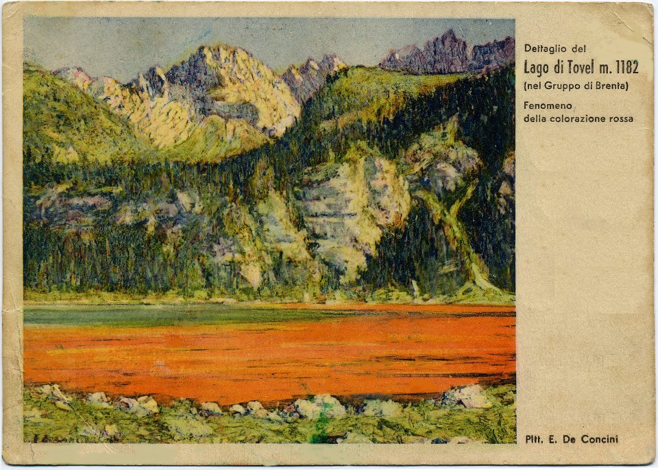 Dipinto del lago Tovel su una cartolina d’epoca