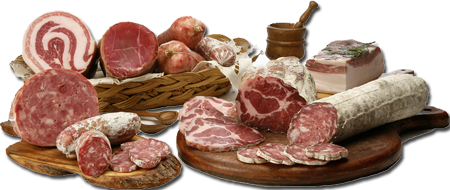 I salumi prodotti dalla macellazione del maiale erano conservati appesi nelle cantine di casa, insieme allo strutto sciolto e messo in grosse bottiglie, le patate al buio con loro.