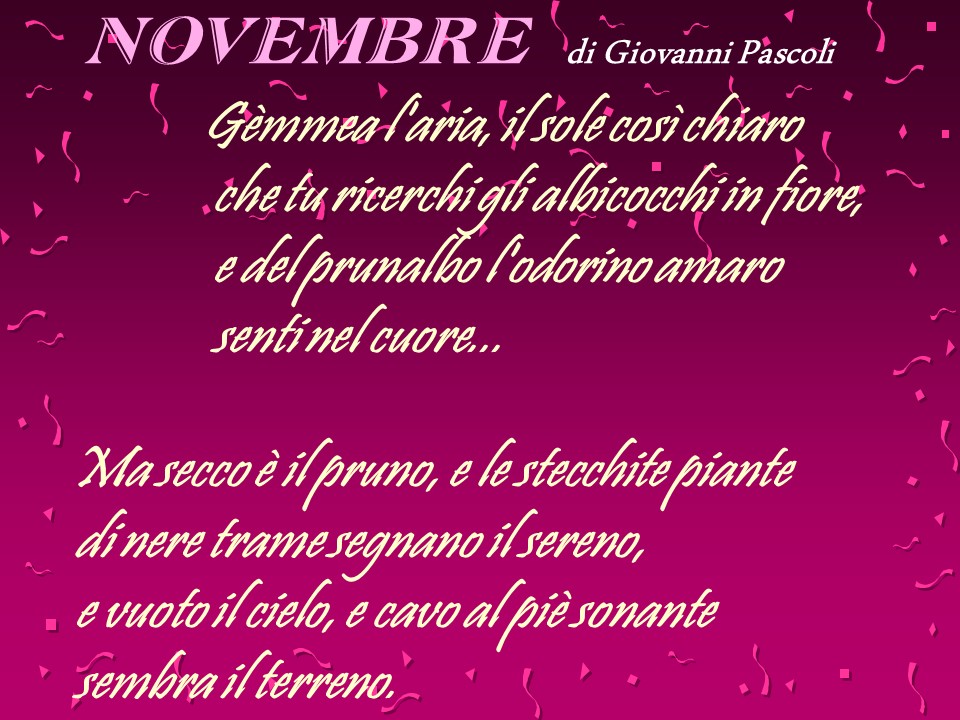 Sintetica ma molto significativa questa poesia di Giovanni Pascoli che ci descrive Novembre.
