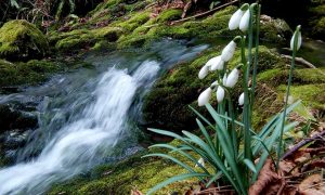 La presenza della coltre bianca ha fatto sì che il fiume si ingrossasse un pochino in modo da poter sentire il suo borbottio. Si è risvegliato dal sonno invernale il bosco con il suo fascino, la natura a ripreso il suo vigoroso cammino; spuntano i primi fiori, appaiono le prime erbe nei prati, con i raggi del sole che filtrano tra i rami degli alberi ormai senza neve. Brillano le gemme di rugiada.