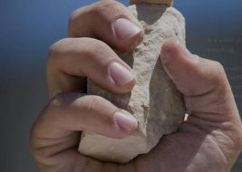 Rimosse dalla tasca della giacca una pietra biancastra con striature dorate.