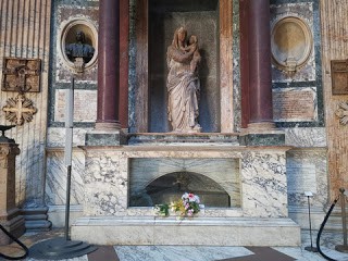 Chiese espressamente essere sepolto all’interno del Pantheon, il tempio pagano di forma circolare, che conserva ancora oggi, l’antica grandezza, che con l’avvento del cristianesimo, diventava la chiesa di Santa Maria della Rotonda, dove Raffaello aveva già fatto restaurare un’edicola e chiesto ad un suo collaboratore, il Lorenzetto, di creare una statua della Madonna col bambino, prendendo come modello una statua romana di Afrodite.