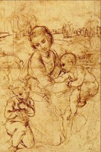 Mentre a Washinton, si trova la Madonna dell’Alba: Maria siede per terra appoggiata ad un tronco, tutto sembra molto semplice, naturale, in realtà c’è molta sapienza, nella progettazione, la grandezza, il segreto, di Raffaello è quello di far apparire ai nostri occhi, tutto molto naturale e semplice.