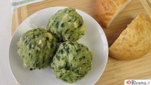 Dorare appena il burro e metterci a soffriggere la cipolla tritata, frullare gli spinaci con le uova ed il latte con il pane ammorbidito. Mettere in una ciottola con cipolla, grattugiato, farina, tutto il frullato, sale pepe mescolare fino a che non saranno bene amalgamati e lasciarli a riposo per dieci minuti.
