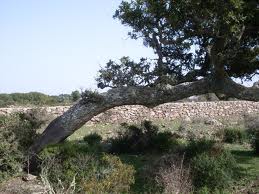 Quercia da sughero con particolare postura inclinata fin dal suo nascere a causa del forte vento di maestrale