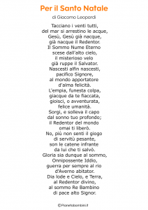 Ci adeguiamo ma non dimentichiamo che nel nostro intimo pensiero siamo tutti poeti e il Santo Natale, oltre alla bontà, ispira anche ad esternare quanto di poetico nasce nel profondo del nostro animo.