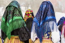 In alcuni paesi il fazzoletto è raccolto sulla testa, mentre in altri diventa quasi una mantella, forse un po’ scomoda, ma decorata in modo ricco e particolarmente preciso, oppure fazzoletti piegati a triangolo, cuffie, scialli colorati, ricamati. Anche il modo di sistemarli, sul capo è diverso da zona a zona.