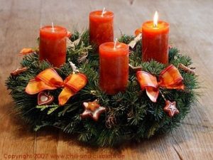 Io ho preparato la corona d’Avvento con i rami dei pini e quest’anno l’ho addobbata con pizzi bianchi e candele rosse. Forse sono più allegri e tradizionali i nastri rossi, ma avendo visto un pizzo bianco mi ha fatto ricordare i vecchi pizzi che si facevano una volta, l’ho comprato senza pensare.